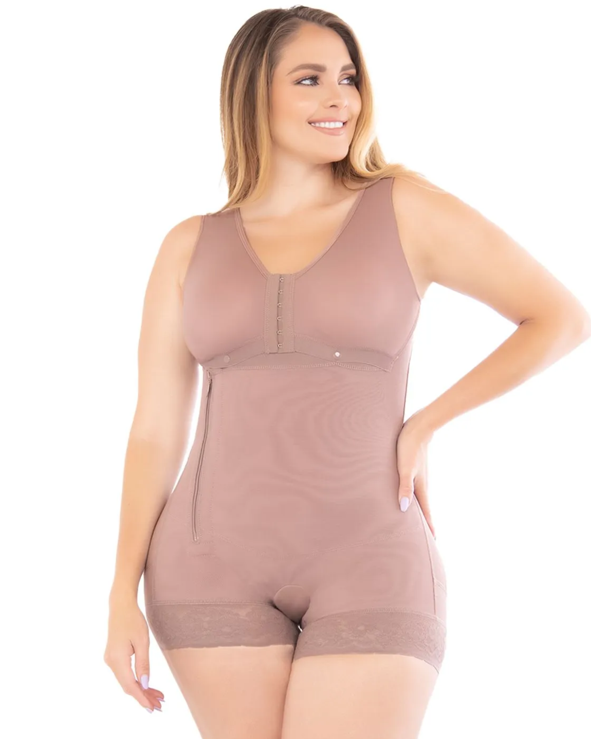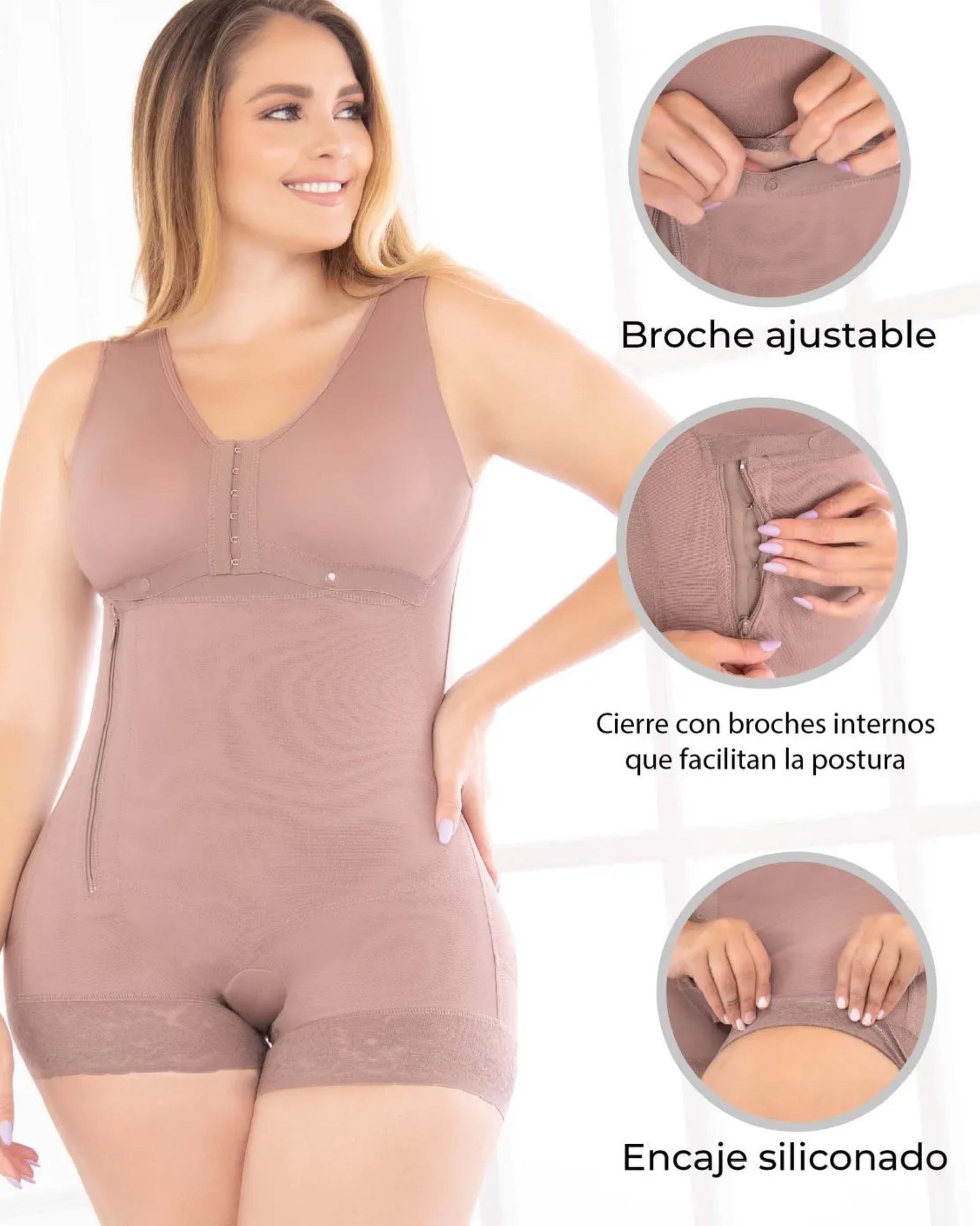 Faja postquirúrgica alta compresión con soporte en busto y cierre lateral