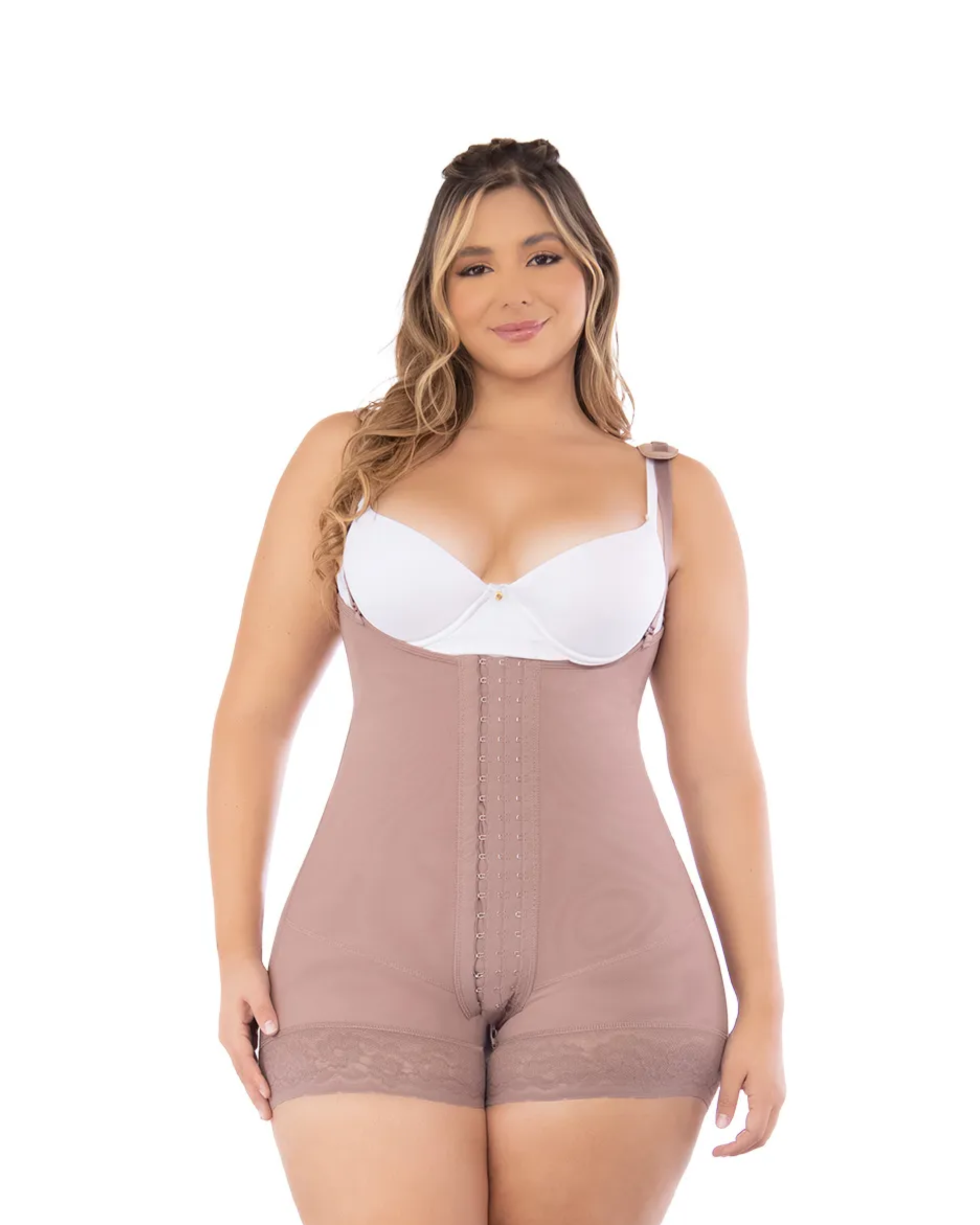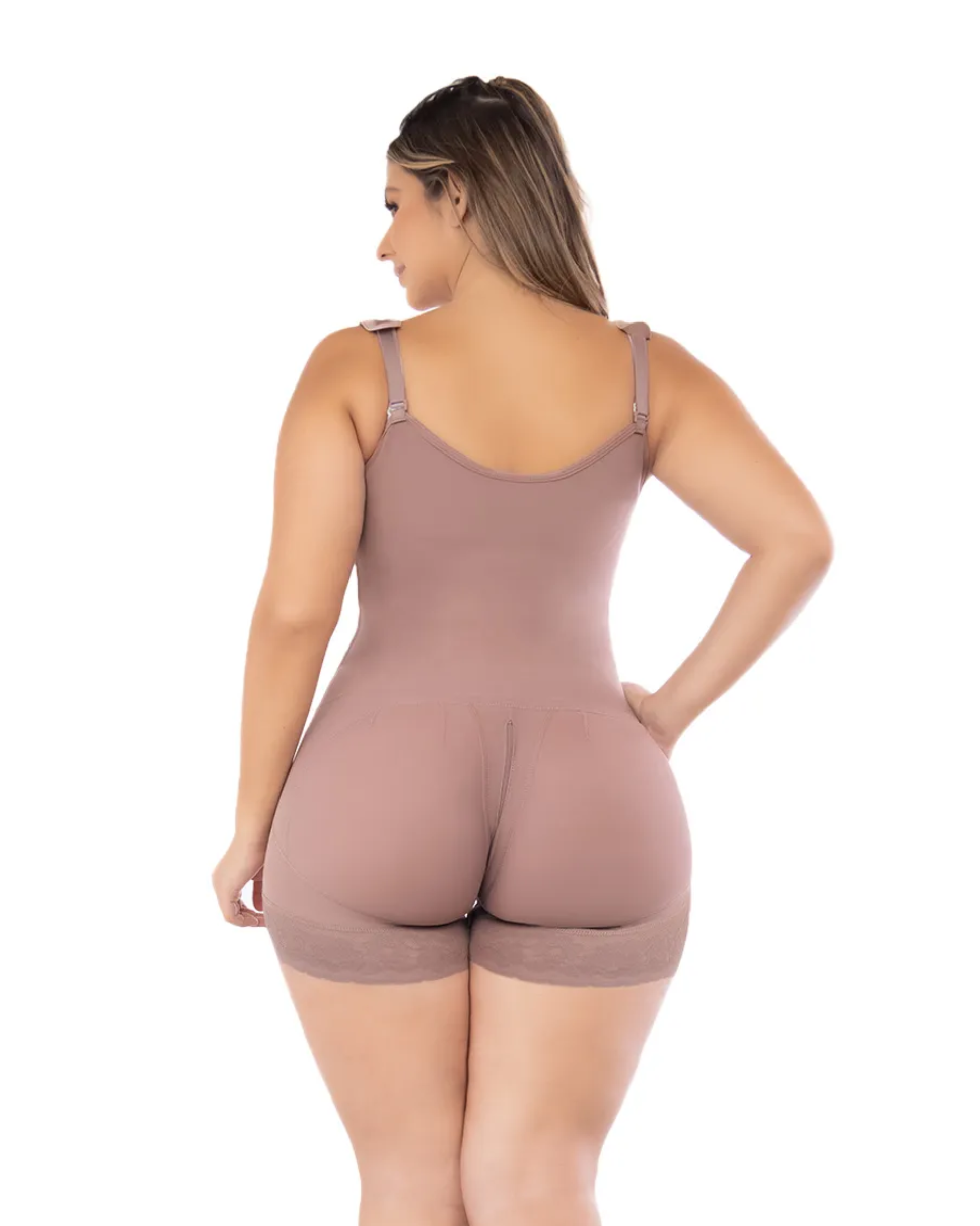 La faja postquirúrgica de alta compresión controla abdomen, caderas, espalda y glúteos, favoreciendo la recuperación postoperatoria. Con cargaderas graduables y tres niveles de ajuste, ofrece un ajuste personalizado y alivia dolores lumbares. Su encaje siliconado garantiza sujeción firme y cómoda.
